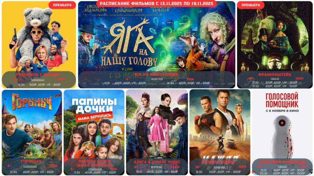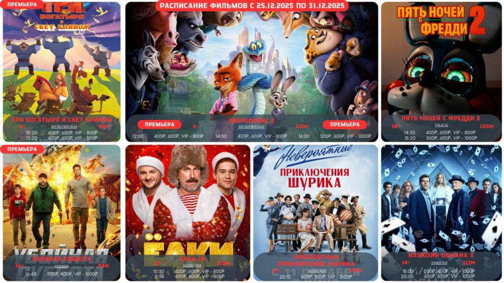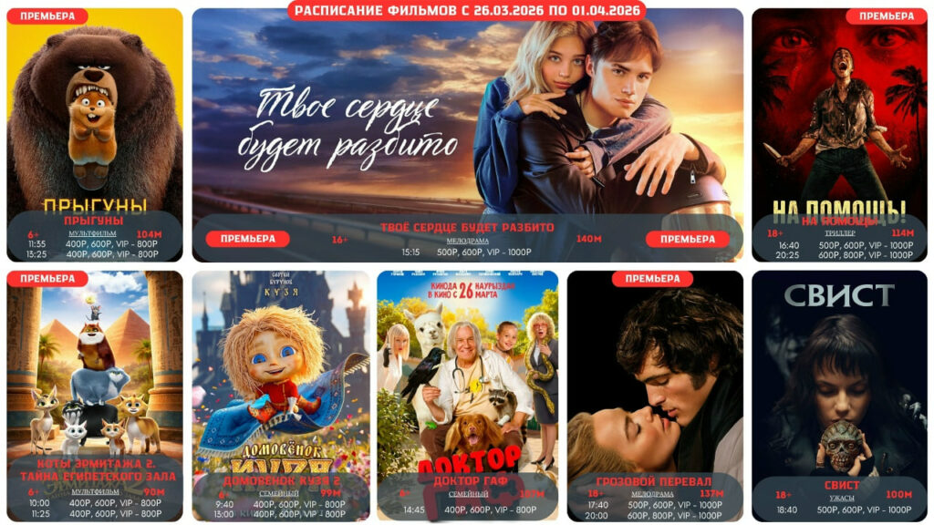 Просторные помещения, уютные мягкие кресла и безупречные кожаные диваны создадут атмосферу уюта и комфорта во время просмотра кино. Современное оборудование и огромные экраны поразят своим высочайшим качеством и насыщенностью изображения. Вы сможете насладиться новейшими отечественными премьерами и голливудскими новинками, находясь буквально в двух шагах от них! В баре кинотеатра вы сможете приобрести ароматный поп-корн различных вкусов. Дружелюбный персонал тепло встретит вас и обеспечит всем необходимым во время сеанса, проведет в зал и покажет ваше место. Мы ждем вас! У нас вы будете чувствовать себя как дома!