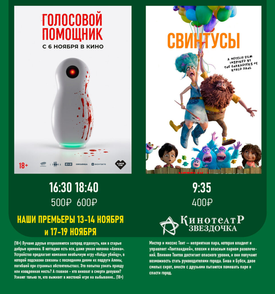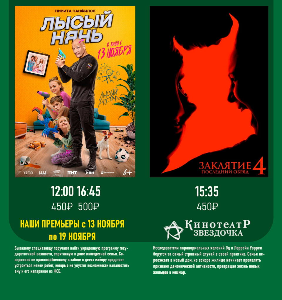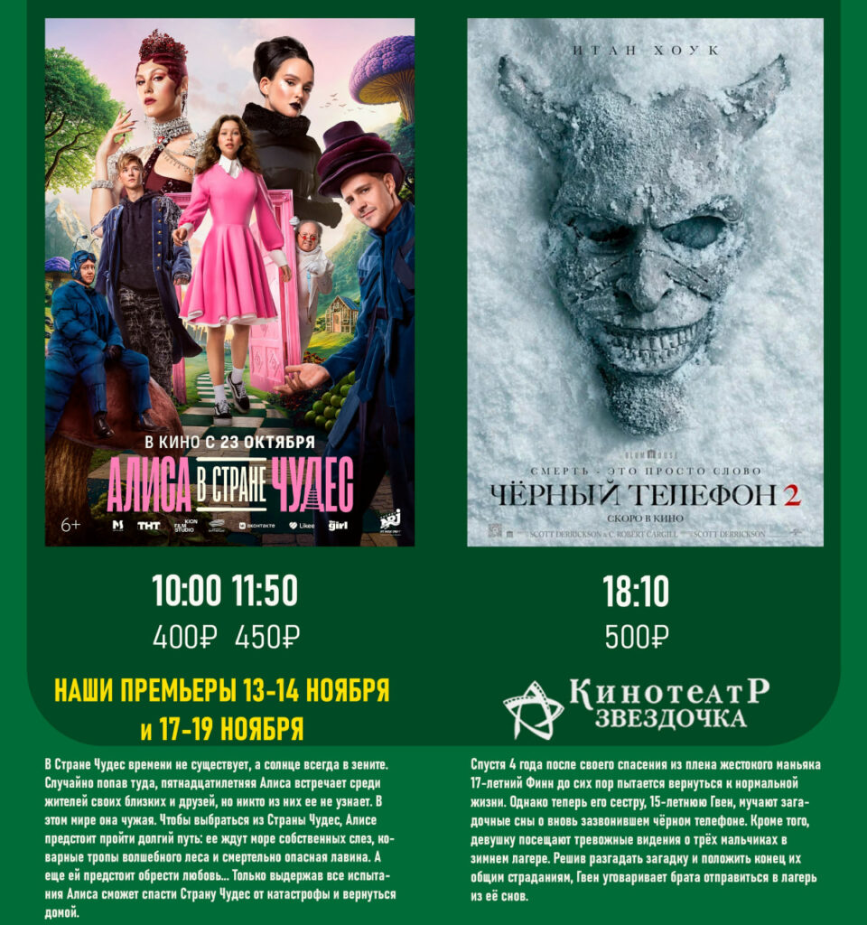 Обращаем ваше внимание, что бронирование билетов осуществляется только в кассе кинотеатра, либо по телефону. Онлайн бронирование билетов в кинотеатре «Звёздочка» недоступно